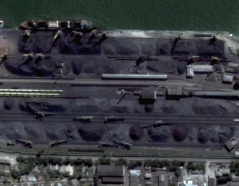 Фото 3-4. Открытая перегрузка угля в Мариуполе (фото Вадима Топалова).