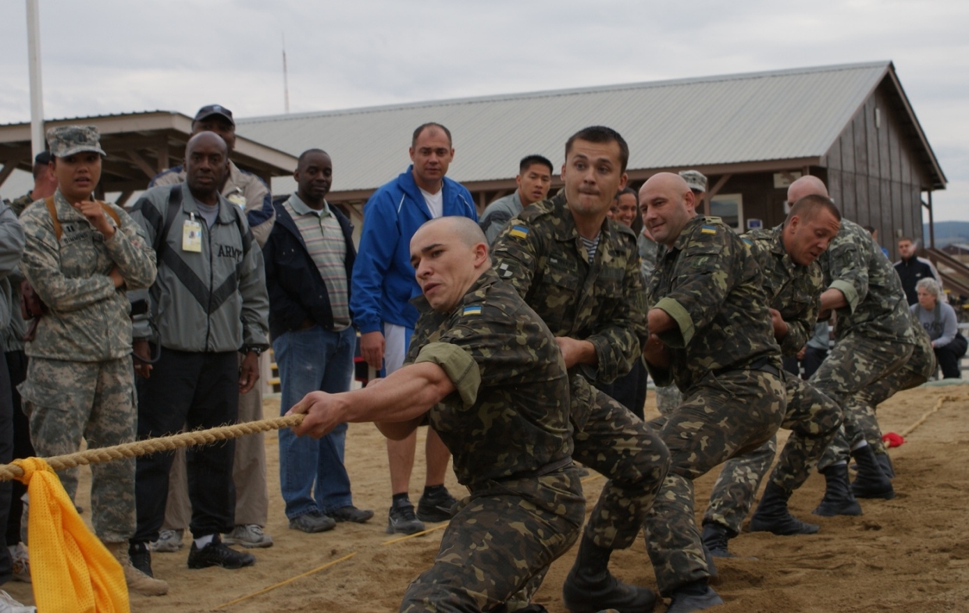 На соревнованиях по перемещении Хаммеру на расстояние в 50 метров при помощи канати, американским военнослужащим не было равных, лучшие среди украинцев на 10 секунд уступили своим соперникам.
