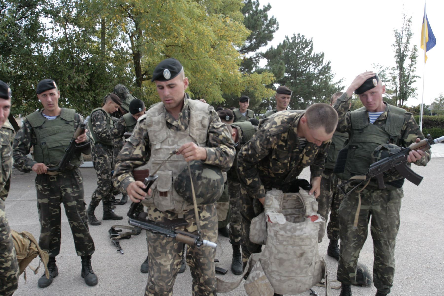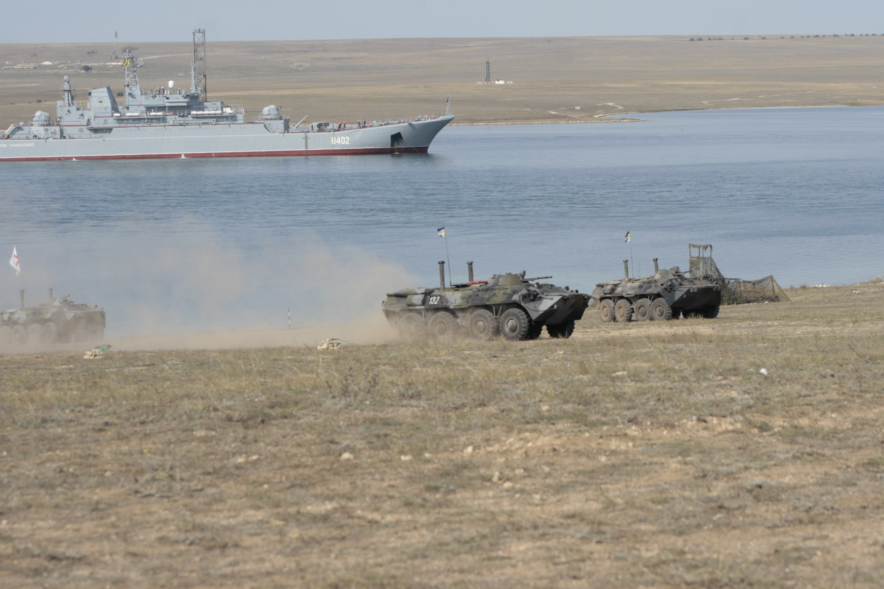 Как уже сообщал "ФЛОТ2017", в районе озера Донузлав (Автономная Республика Крым) свыше 1000 человек личного состава, 5 кораблей и судов обеспечения, 7 самолетов и вертолетов, 15 единиц бронетанковой техники, свыше 50 единиц специальной и автомобильной техники Военно-Морских Сил Вооруженных Сил Украины принимают участие в подготовке к тактическому учению группировки разнородных сил, которое состоится завтра, 8 октября. С силами украинского флота взаимодействуют 4 вертолета армейской авиации Сухопутных войск ВС Украины и 4 самолета Воздушных Сил ВС Украины. Тема учений - блокирование и разоружение незаконных вооруженных формирований на приморском направлении во взаимодействии с подразделениями других видов Вооруженных Сил Украины. Также целью тактического учения является усовершенствование слаженности органов управления силами (войсками), повышение морской, полевой и летной выучки личного состава Военно-Морских Сил, организация взаимодействия между кораблями и частями, укрепление практических навыков командиров всех звеньев.