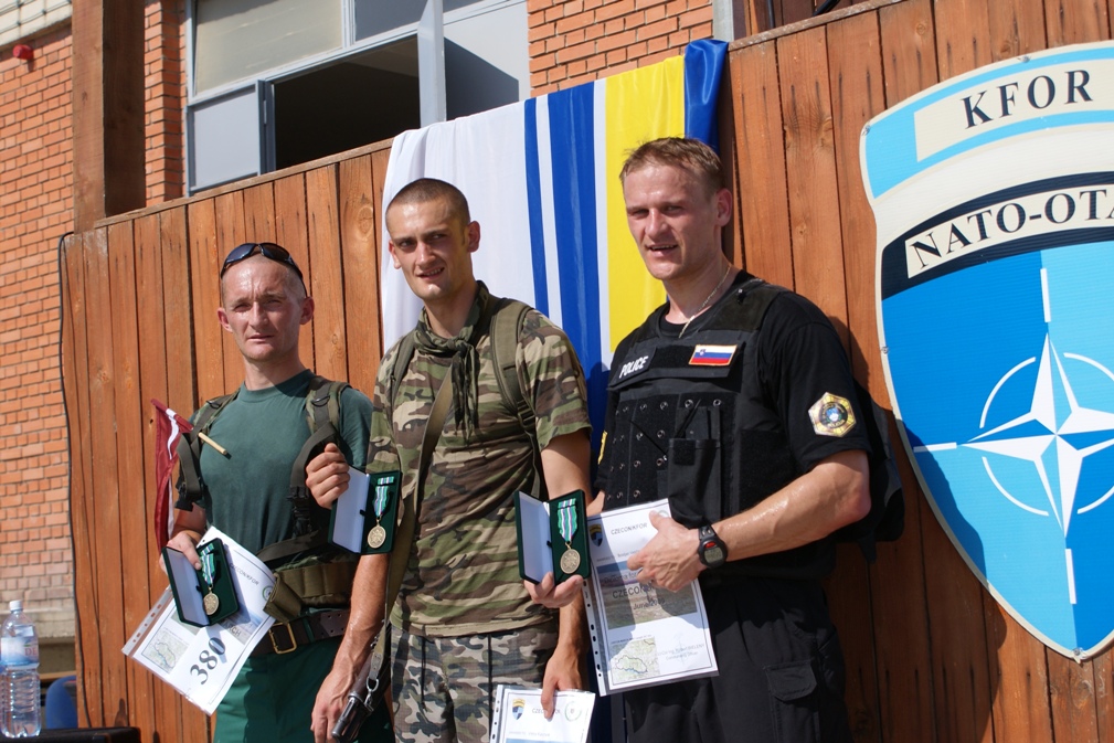 …Первым к финишу пришел украинец старший матрос Виктор Футурнюк, который преодолел дистанцию в 25,7 километров с результатом 2 часа 12 минут. На шесть минут позже финишировал офицер-кинолог (К-9) из Латвии капитан Валдис Биковскис, а представитель полиции UNMІК словенец майор Буштиан Велички с результатом 2 часа 26 минут занял третье место…