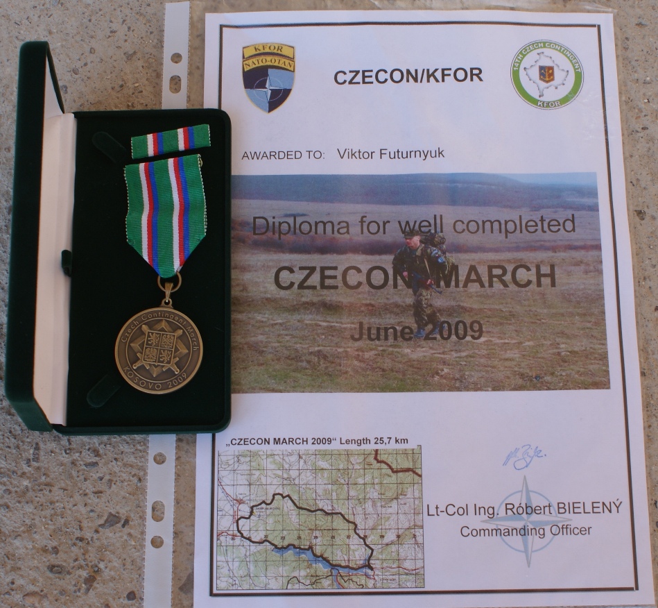 В Военно-Морских Силах ВС Украины старший матрос Виктор Футурнюк служит в специальной части, которая дислоцируется в г. Очаков. По его словам, служба в элитном подразделении требует помимо прочего и мощной кроссовой подготовки, именно поэтому победа украинского миротворца не была неожиданной. В мае он занял почетное четвертое место на соревнованиях "DANCON MARCH", а за неделю до "СZECHCON MARCH-2009" старший матрос Виктор Футурнюк занял первое место на международных соревнованиях по кроссу на 3 мили, которые проводились среди военнослужащих лагеря "BOND STEEL".