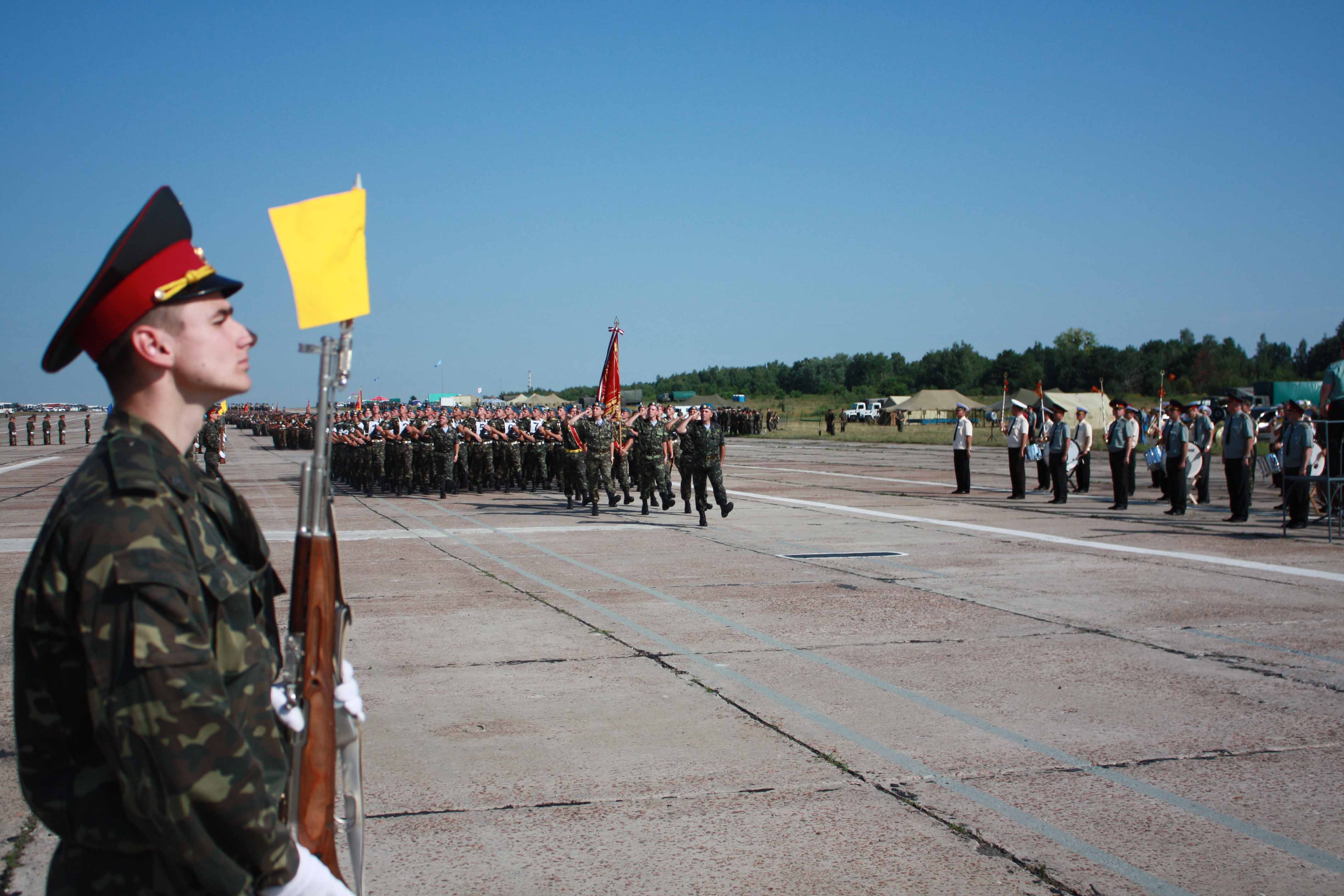 В ходе подготовки парада будет проведено несколько тренировок в полном составе парадных расчетов, - на взлетно-посадочной полосе аэродрома Киевского авиационного завода «АВИАНТ» и непосредственно на улице Крещатик. Первая из них уже была проведена на ВПП "Авианта". Предлагаем нашим читателям фоторепортаж с места тренировки.