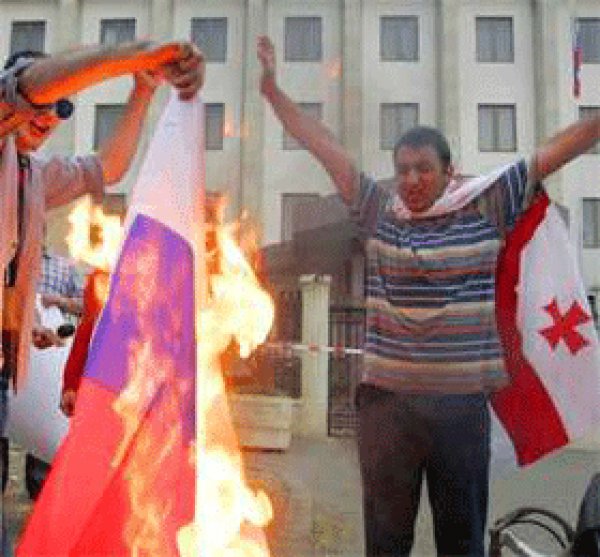Грузинские радикальные оппозиционеры в годовщину войны в Южной Осетии на проспекте Руставели в Тбилиси сожгли российский флаг, - сообщает газета ВЗГЛЯД.